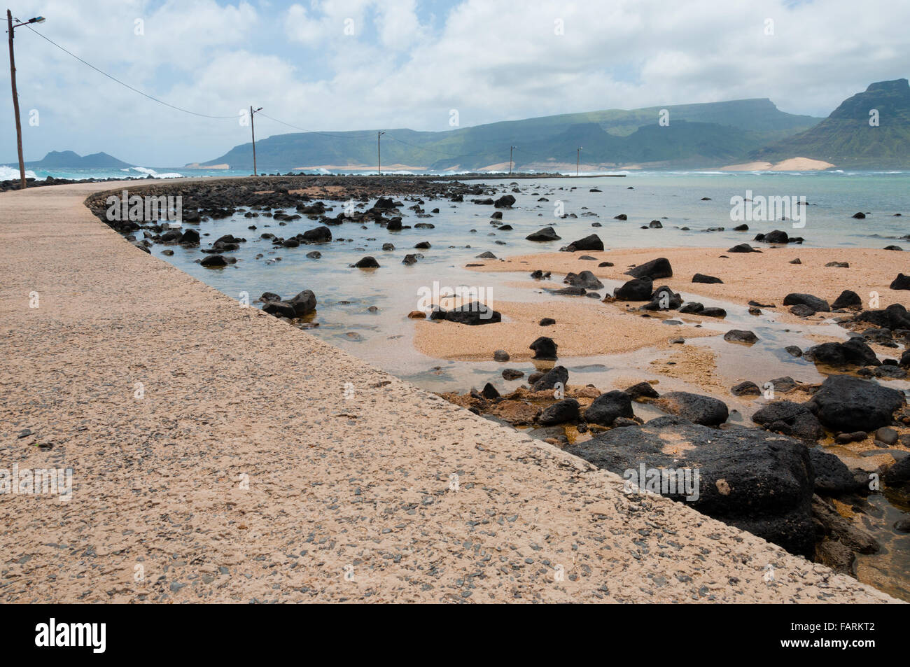 Concrete road next to the sea and sand beach in Cape Verde island off
