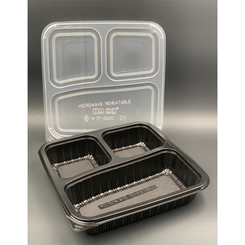 TAGE TFSQ3C 3 Compartment PP Lunch Box with Lid ( 50sets± ) Disposable