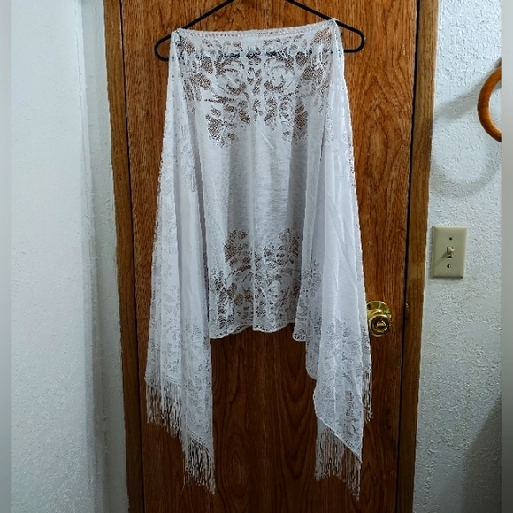 dressbarn Accessories White Lace Boho Poncho Wfringe Poshmark
