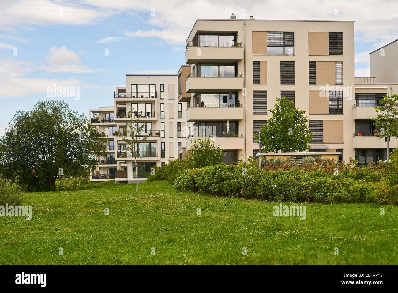 Many rental apartments in apartment buildings in a residential area of