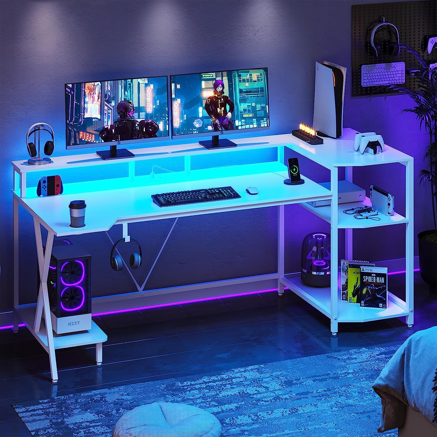 White L Shaped Desk Gaming Setup Its monitor stand is elevated and supports monitors up to 32 Gaming Computer Desk White  Aodk white desk, gaming desk with adjustable monitor shelf, 40 inch computer desk with drawer, reversible pc desk with led lights & power. Sedeta white gaming desk 78.8'' with led lights, hutch and storage shelves, computer desk with monitor stand, large pc gamer desk workstation,. Bestier white gaming desk with power outlet, 71.5 led computer desk with monitor stand, large. Gaming Computer Desk White.