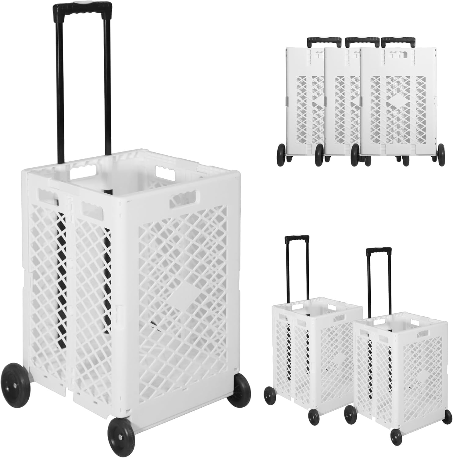 3 PCS Foldable Rolling Crate With Wheels, Folding Heavy Duty