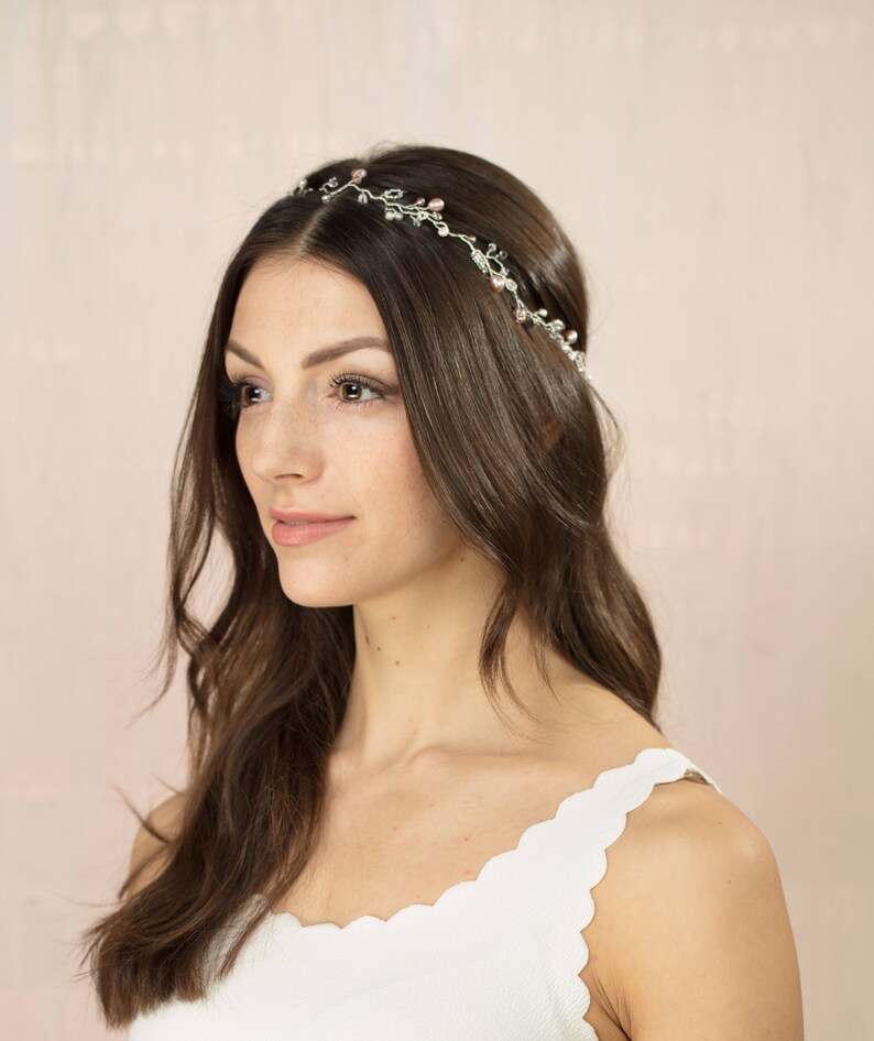 Blush Pink Pearl and Crystal Wedding Hair Garland Freshwater Etsy UK