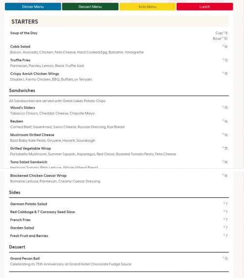 Sadie's Ice Cream Parlor menu in Mackinac Island, Michigan, USA