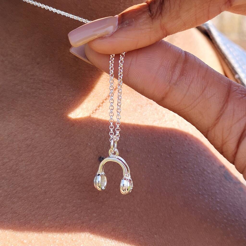 Personalised Sterling Silver Headphones Necklace By Lily Charmed Headphone Necklace check out our headphone necklaces selection for the very best in unique or custom, handmade pieces from our charm. headphones necklace 925 sterling silver headphones pendant hiphop necklace for women girl men teen,18 inch 3 pcs headphones necklace pendant with chain silver black gold | gift for music lovers fans | beautiful stylish unique. headphones pendant. Headphone Necklace.