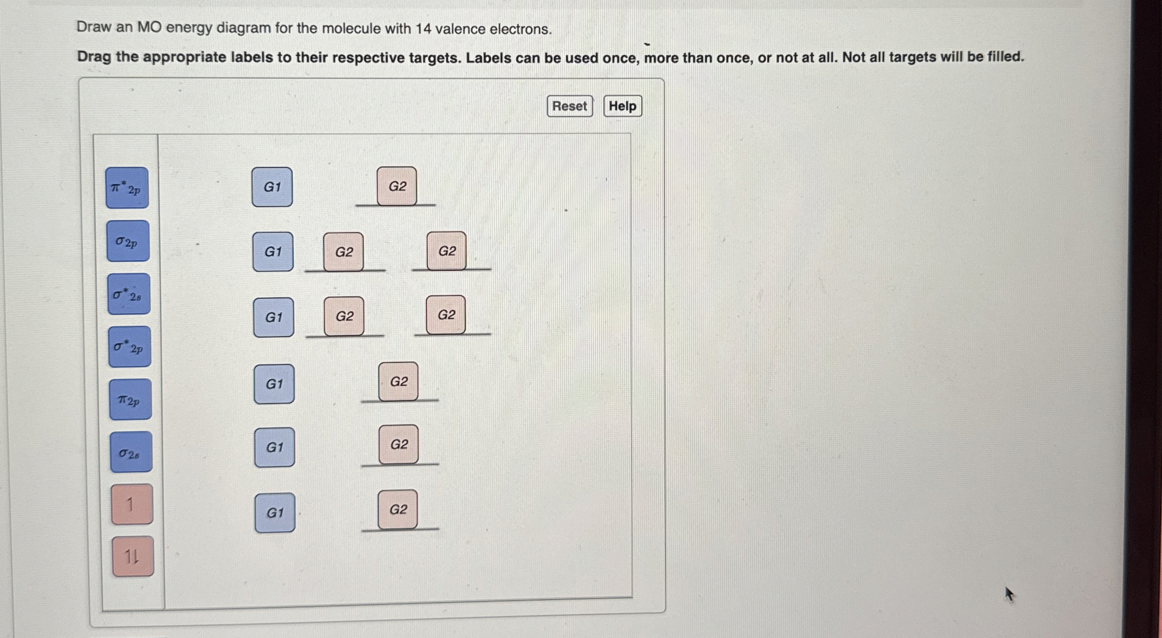 Draw an MO energy diagram for the molecule with 14