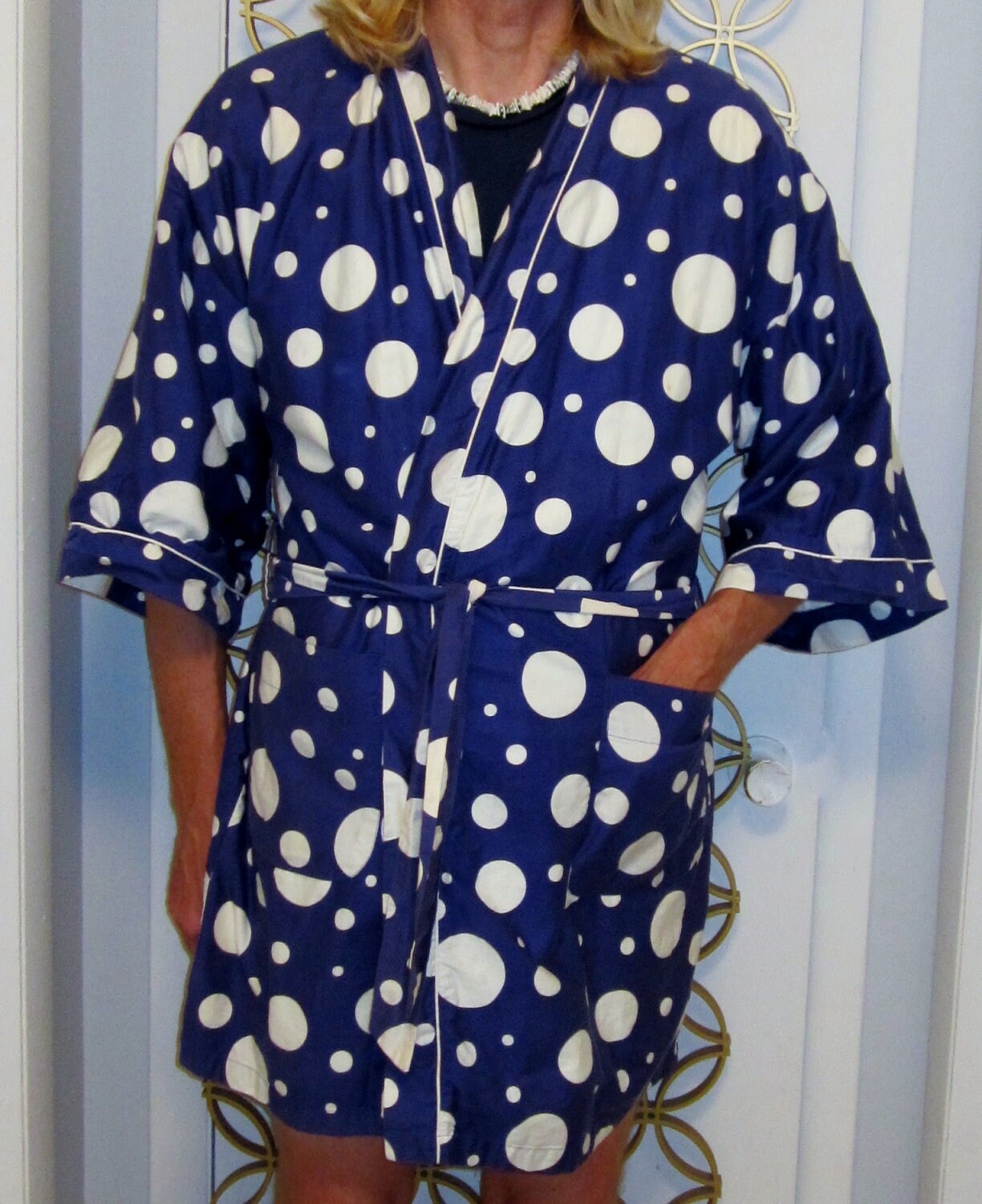 Vintage Pierre Cardin Robe PlushBlue & White Polkadot by linbot1