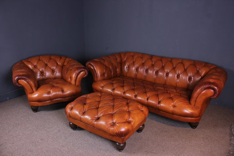 Tetrad Oskar Buffalo Leather Chesterfield Sofa Chair and Footstool For