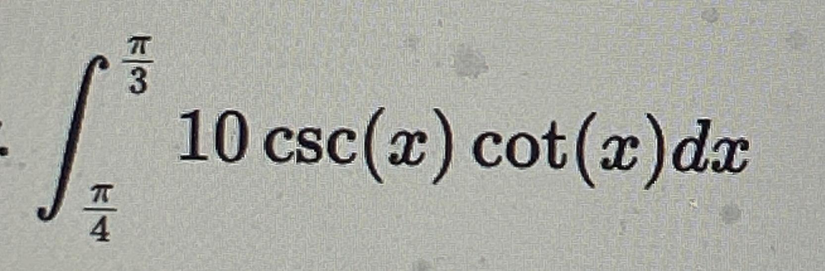 Solved ∫π4π310csc(x)cot(x)dx