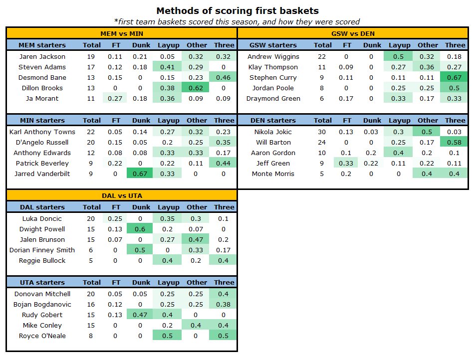 First Basket Bets on Twitter "421 scoring method data A table to