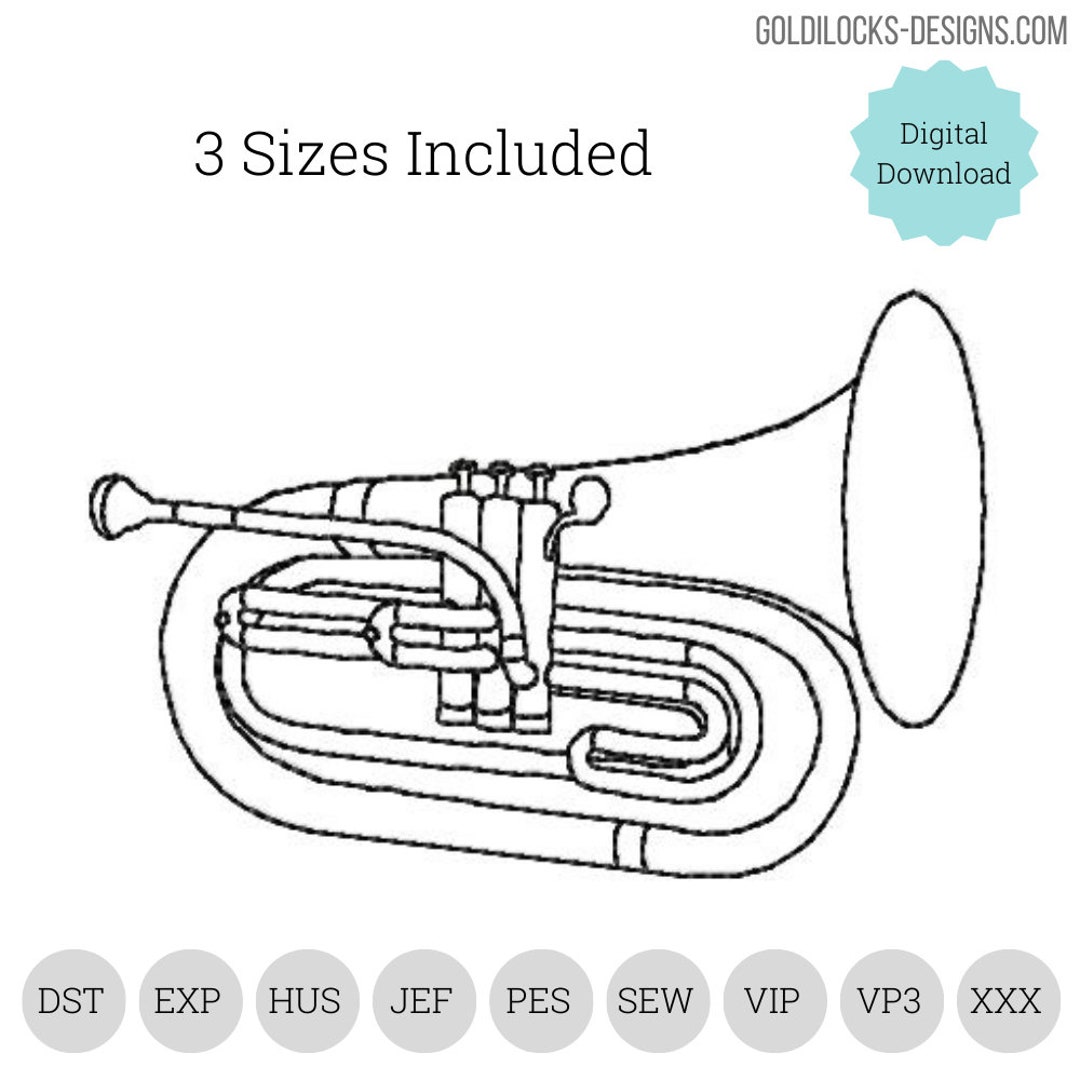 Marching Baritone Euphonium Outline Embroidery Design 3 Sizes Included