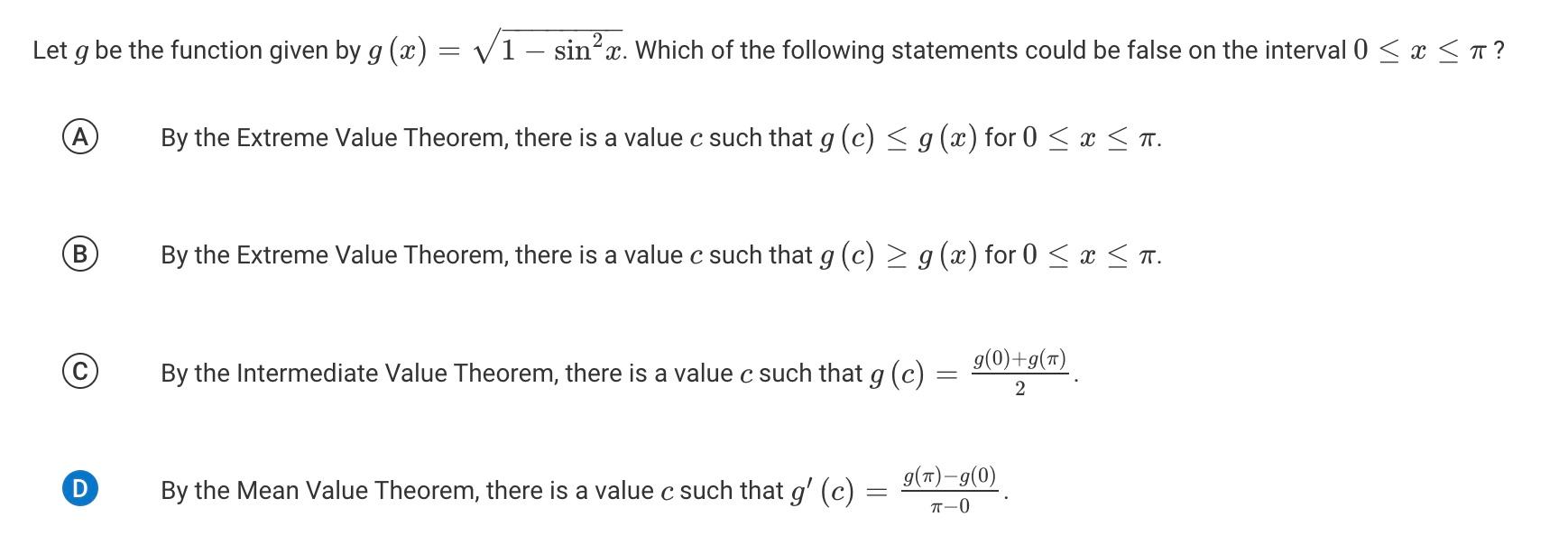 Solved Let g be the function given by g(x)=1−sin2x. Which of