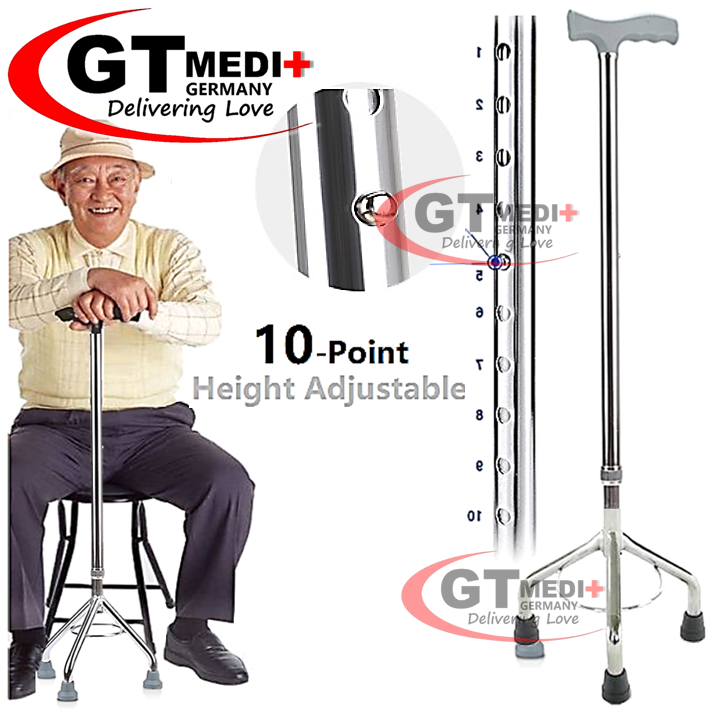 GT MEDIT GERMANY 10 Point Height Adjustable Tripod Base Cane Walker Tripod Base Cane Aluminum tubing with steel welded low base. mubba tripod walking canes are extremely helpful for patients, who need support. mubba tripod sticks are made out of special grade of iron to ensure strength, durability and light weight. so, whether you’re looking for an able tripod cane base, a pediatric tripod cane, a tripod cane seat, or a. Tripod Base Cane.