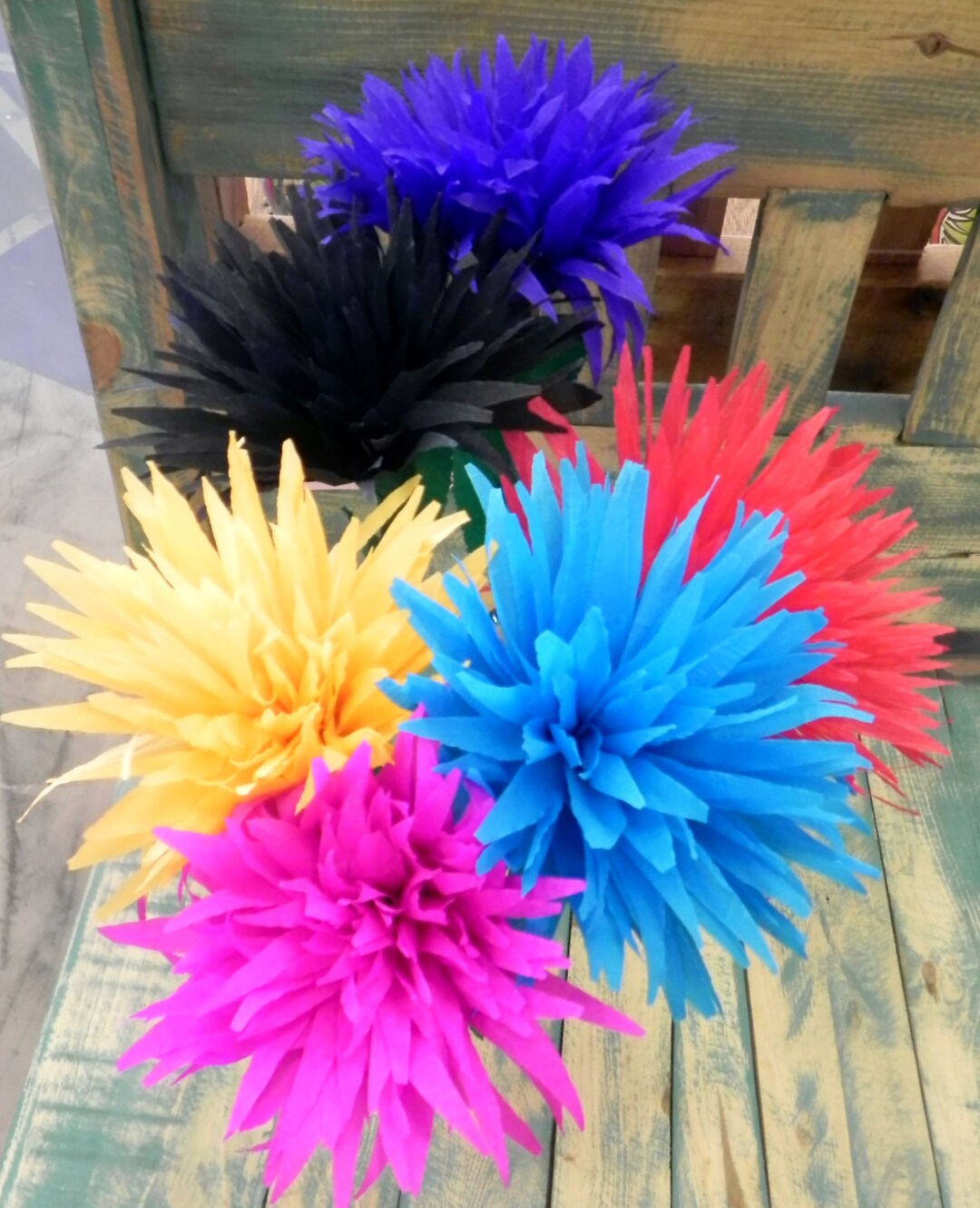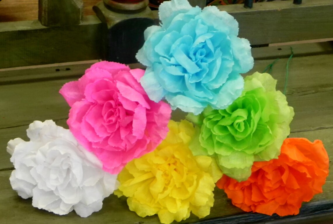 Mexican Crepe Paper Flowers Set of 6 Multicolor Etsy Crepe Paper Mexican Flowers Roll green paper into a stem. A combination of mexican paper flowers and those ever so popular tissue paper pom poms, these vibrant and cheerful flowers make perfect ornaments for any celebration. These are cheap and easy to make, perfect for children's craft projects and party favors. Mexican paper flowers are decorations made from crepe paper or tissue paper. These. Crepe Paper Mexican Flowers.