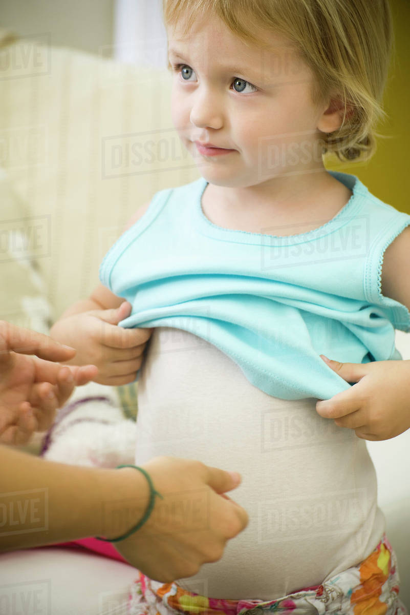 Little girl putting on clothes Stock Photo Dissolve