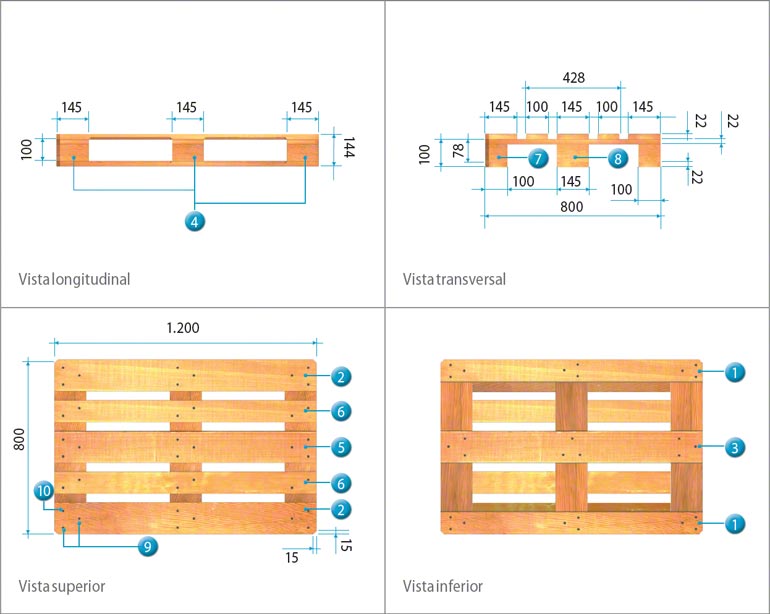 El palet europeo o europalet de 800 * 1,200 mm y sus derivados (½ y ¼ Pallets De Madera Medidas Los palets de madera son los soportes de mercancía más utilizados y hay distintos tipos según sus características. En este artículo, exploraremos los diferentes tipos de palets de madera homologados y sus medidas, ofreciendo una guía completa. Estos son algunos ejemplos de palets recuperados tratados para que vuelvan a estar como el primer día. ¿cuáles son los más extendidos?. En. Pallets De Madera Medidas.