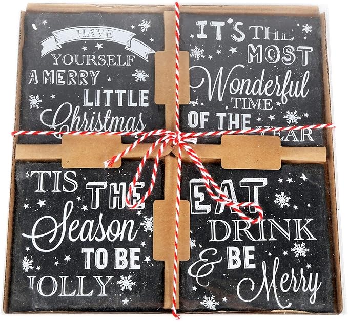 Set of 4 Slate Christmas Sayings Drinks Coasters Amazon.co.uk Kitchen