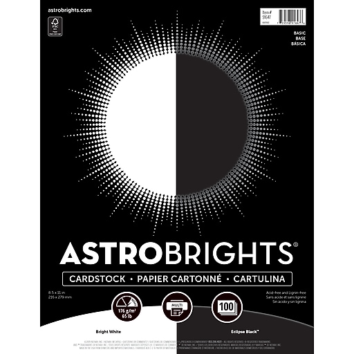Astrobrights 65 lb. Cardstock Paper, 8.5" x 11", Black/White, 100
