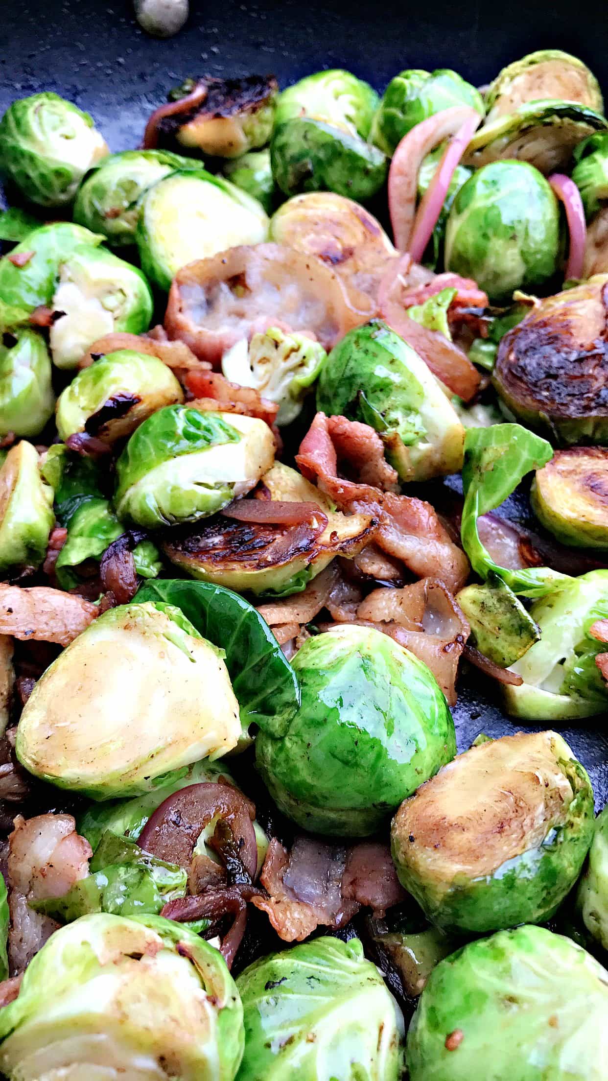 Caramelized Balsamic Bacon Brussels Sprouts with Garlic