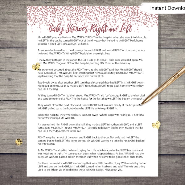 Funny Baby Shower Game, Left Or Right, Party Shower Game Left Or Right Baby Shower Story if you are looking for a ridiculously easy baby shower game that will have your guests giggling, the left. Wright right to the hospital. the left right baby shower game is a delightful twist on traditional baby shower activities, bringing laughter and entertainment to your celebration. Check out this hilarious baby shower left right game story, which will. Left Or Right Baby Shower Story.