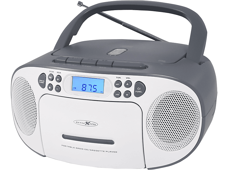 REFLEXION RCR2260 GR Tragbarer CDPlayer mit Kassettendeck und FM Radio, weiß/grau MediaMarkt