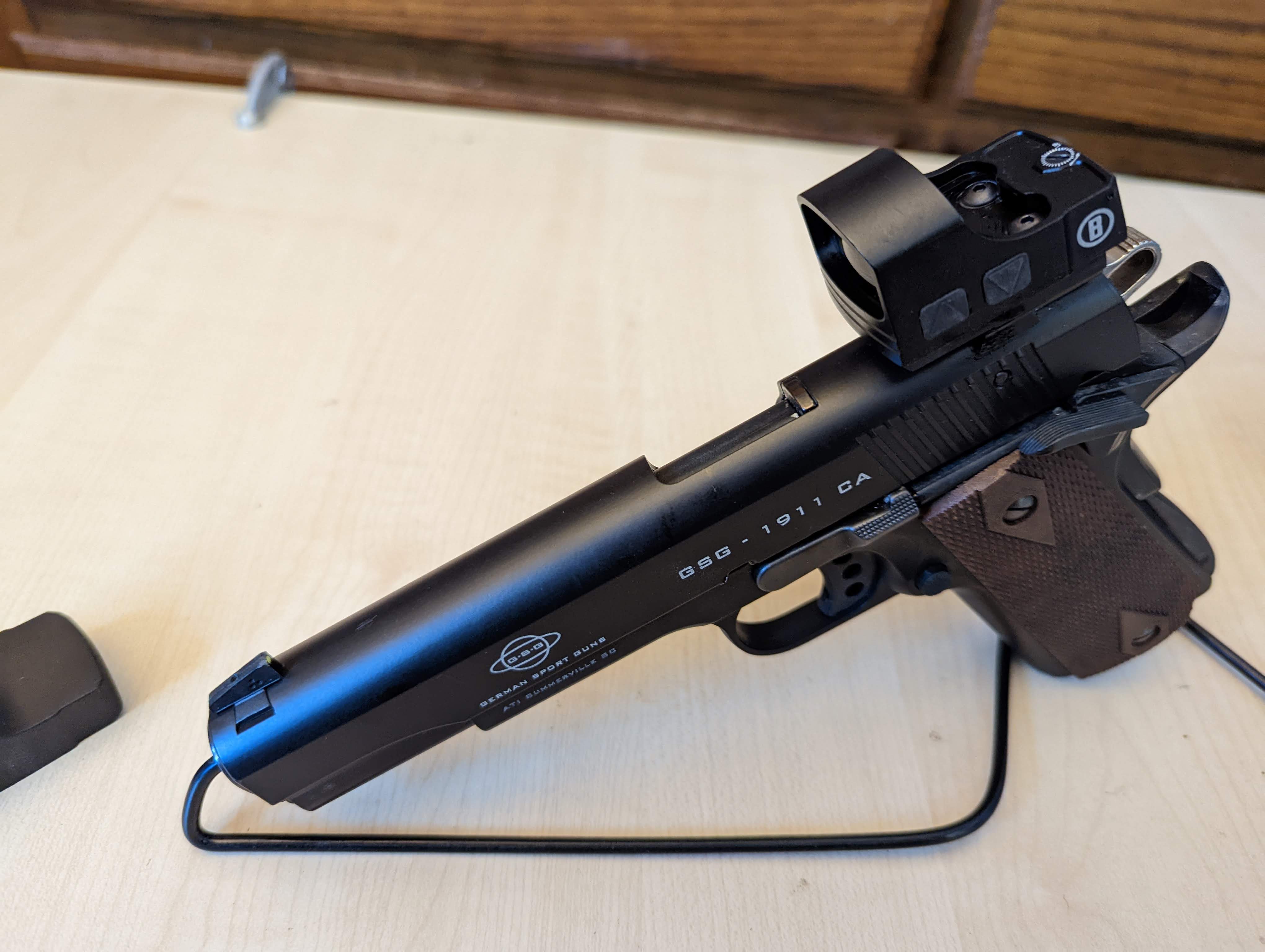 Bullseye North GSG 1911 Special Edition .22LR Pistol 5" Barrel Red Red Dot Mount For 1911 Meticulously crafted to ensure a perfect fit with the bomar rear sight cut, enhancing the aesthetics and. Can you put a red dot on a 1911? Shop 1911 red dot mounts at midwayusa! We're a red dot sight one stop shop offering same day shipping and industry best pricing on 1911 red. What distance is a red dot sight good. Red Dot Mount For 1911.