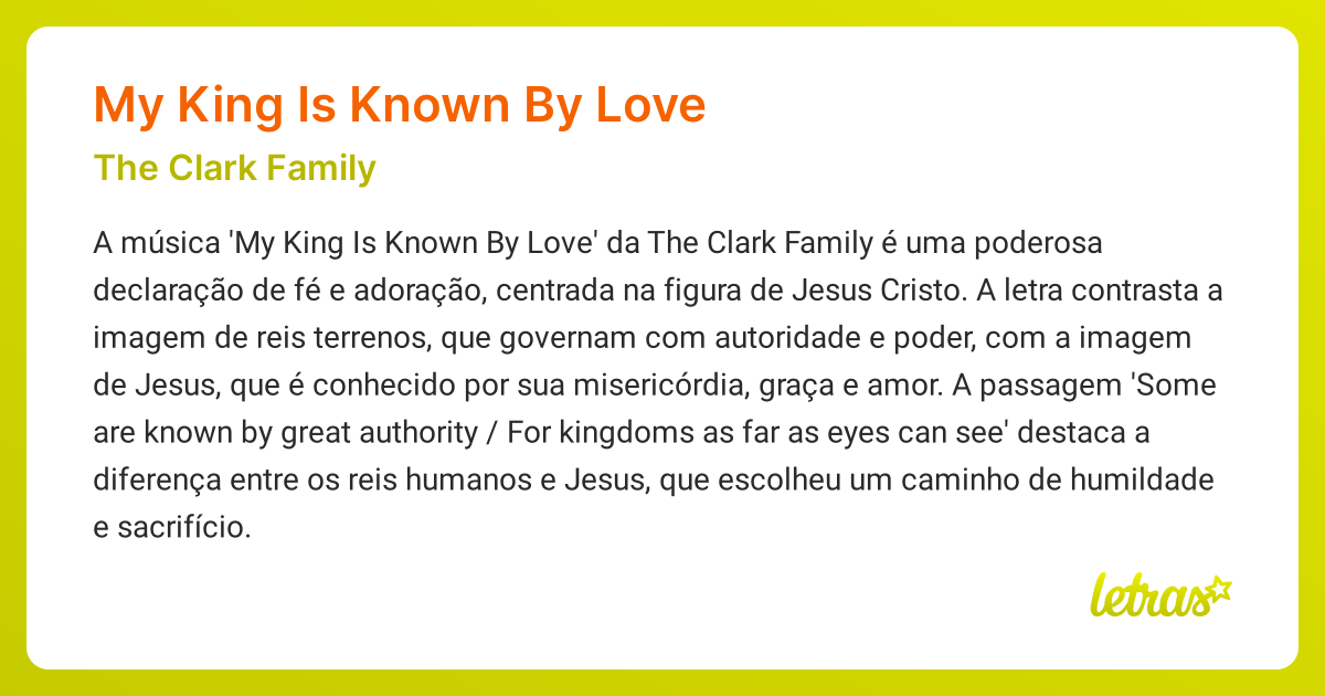 Significado da música MY KING IS KNOWN BY LOVE (The Clark Family