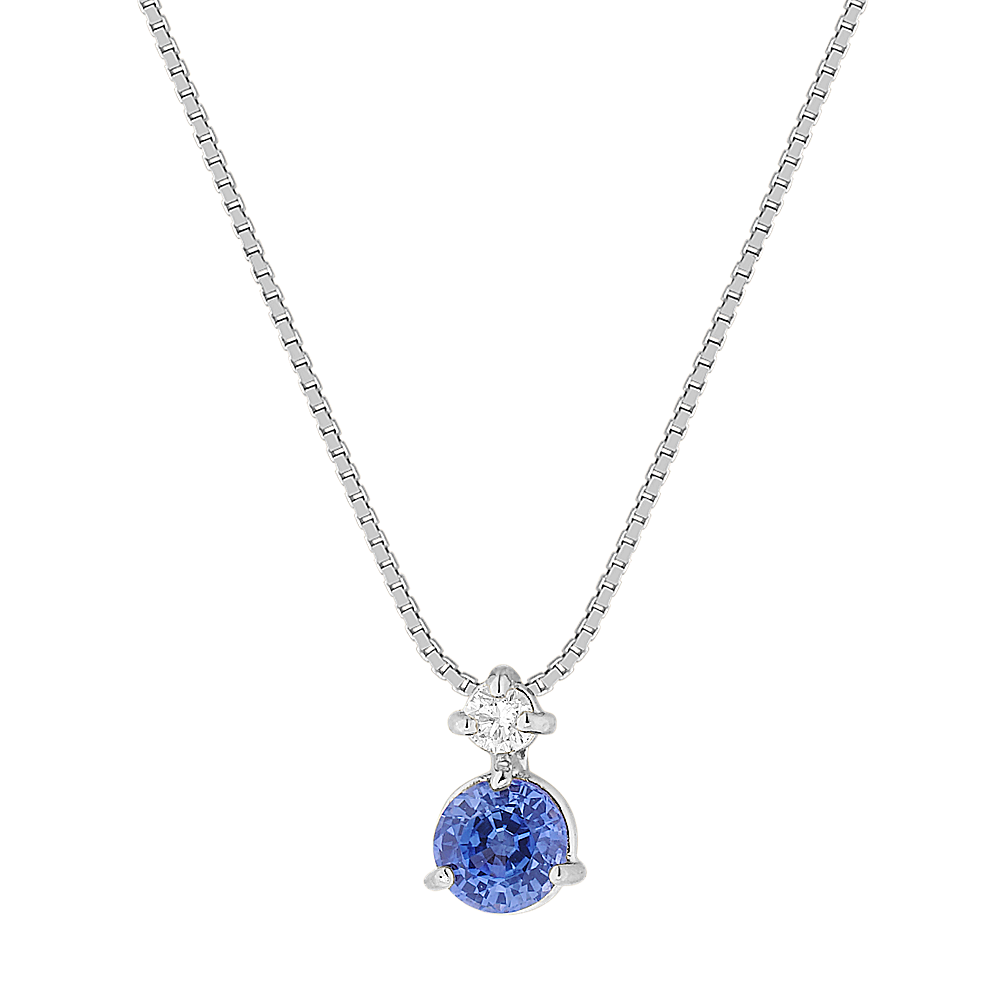 Round Kentucky Blue Sapphire and Diamond Pendant (18 in) Shane Co.