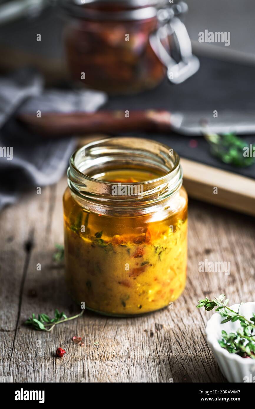 Sun dried tomato with Lemon Thyme Salad dressing Stock Photo Alamy