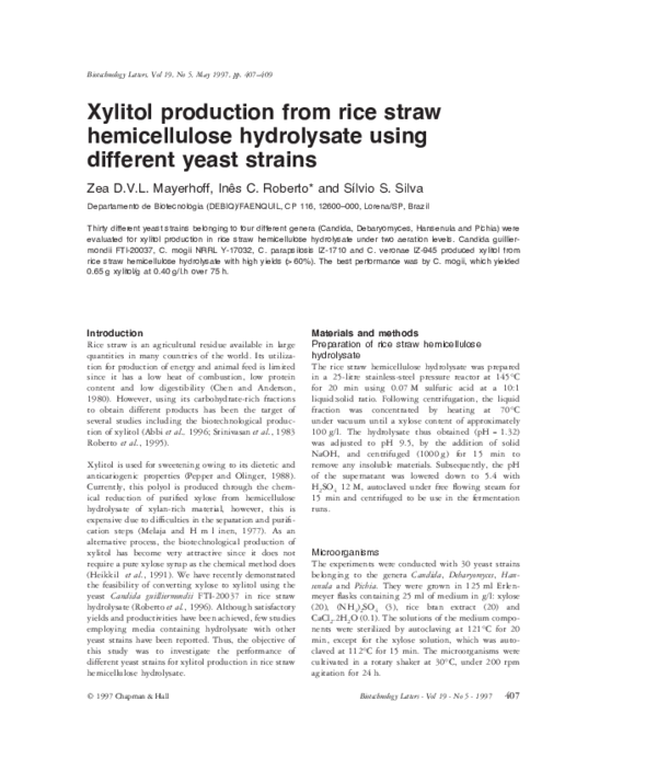 (PDF) Xylitol production from rice straw hemicellulose hydrolysate