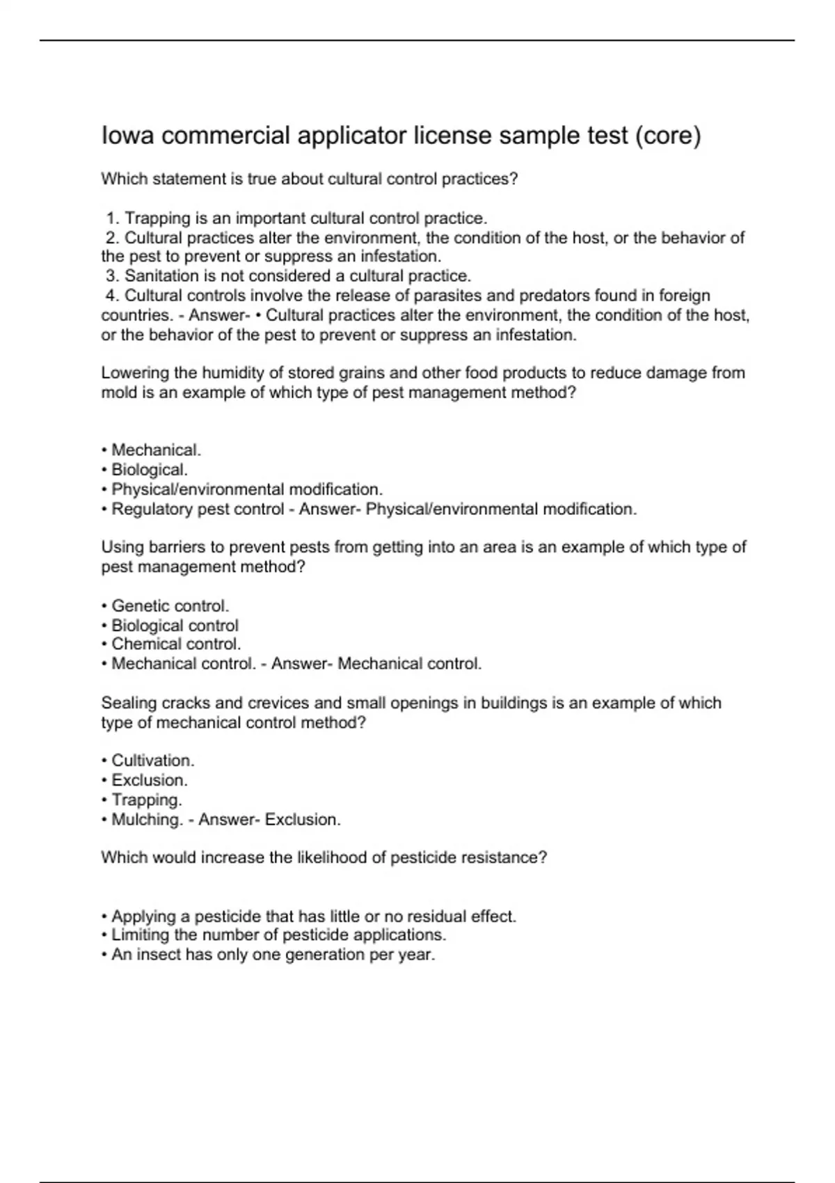 Iowa commercial applicator license sample test (core) Iowa Stuvia US