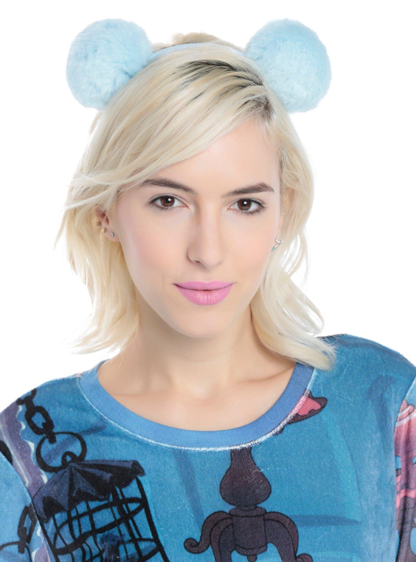 Pastel Blue Fuzzy Pom Pom Headband Hot Topic