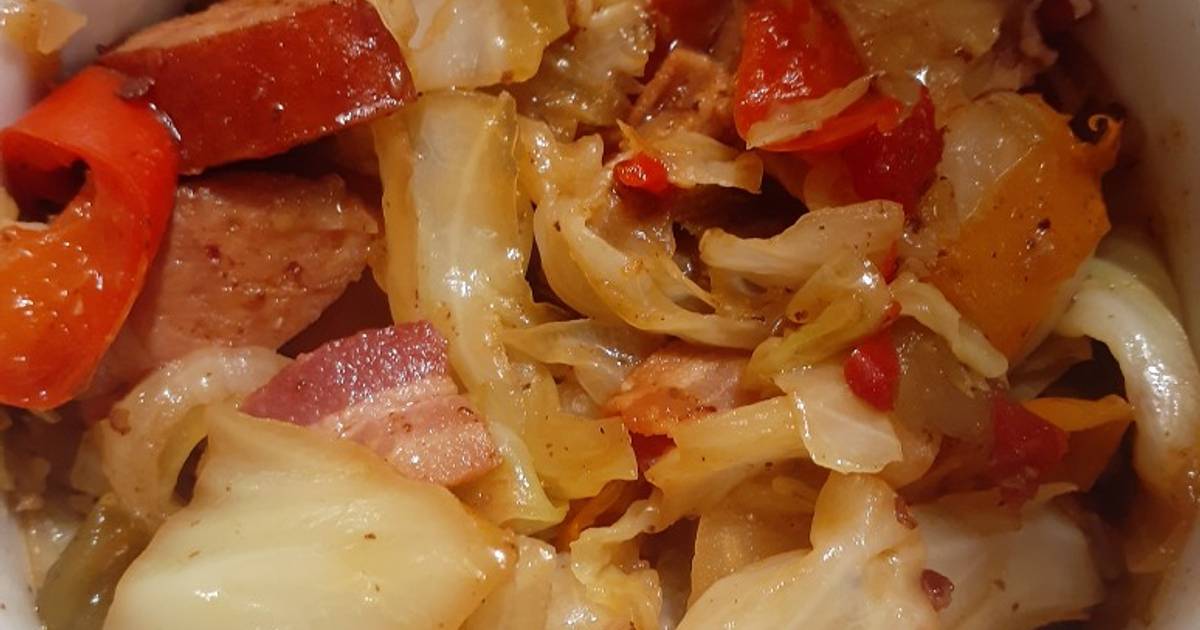 Cabbage Jambalaya Recipe by Bayou Cajun Mama Cookpad Cabbage Jambalaya Recipe Cajun cabbage jambalaya is a spicy and filling dish featuring pork sausage, green cabbage, green bell pepper, celery, and other seasonings, simmered in a large pot. Mix in diced tomatoes, chicken stock, cabbage. This makes about 4 servings. My family loves cabbage and this cajun cabbage is one of their favorites. I made this in a ten inch iron skillet. Cabbage Jambalaya Recipe.
