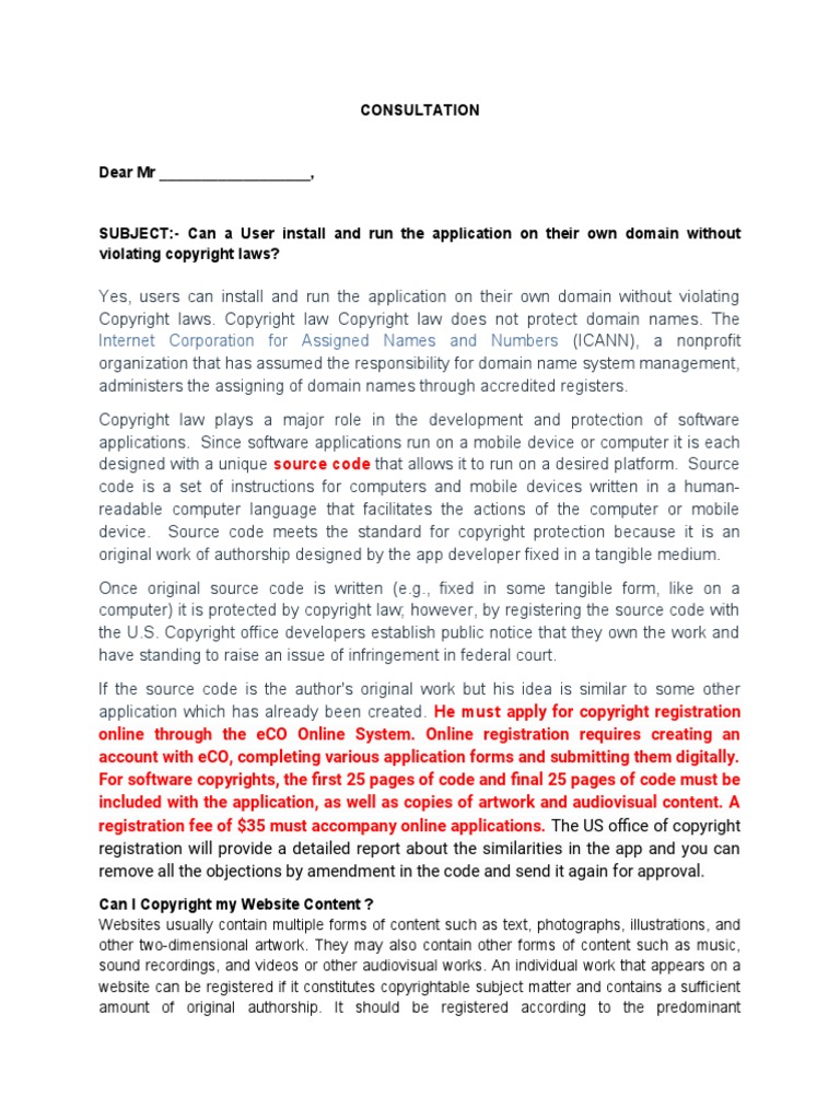 Copyright Law Consultation PDF Copyright Source Code