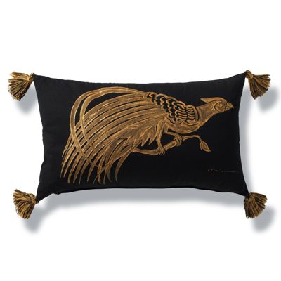 Handpainted Gold Bird Outdoor Lumbar Pillow Frontgate