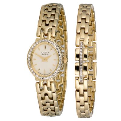 Citizen Ladies' Goldplated Stoneset Bracelet Watch Set H. Samuel