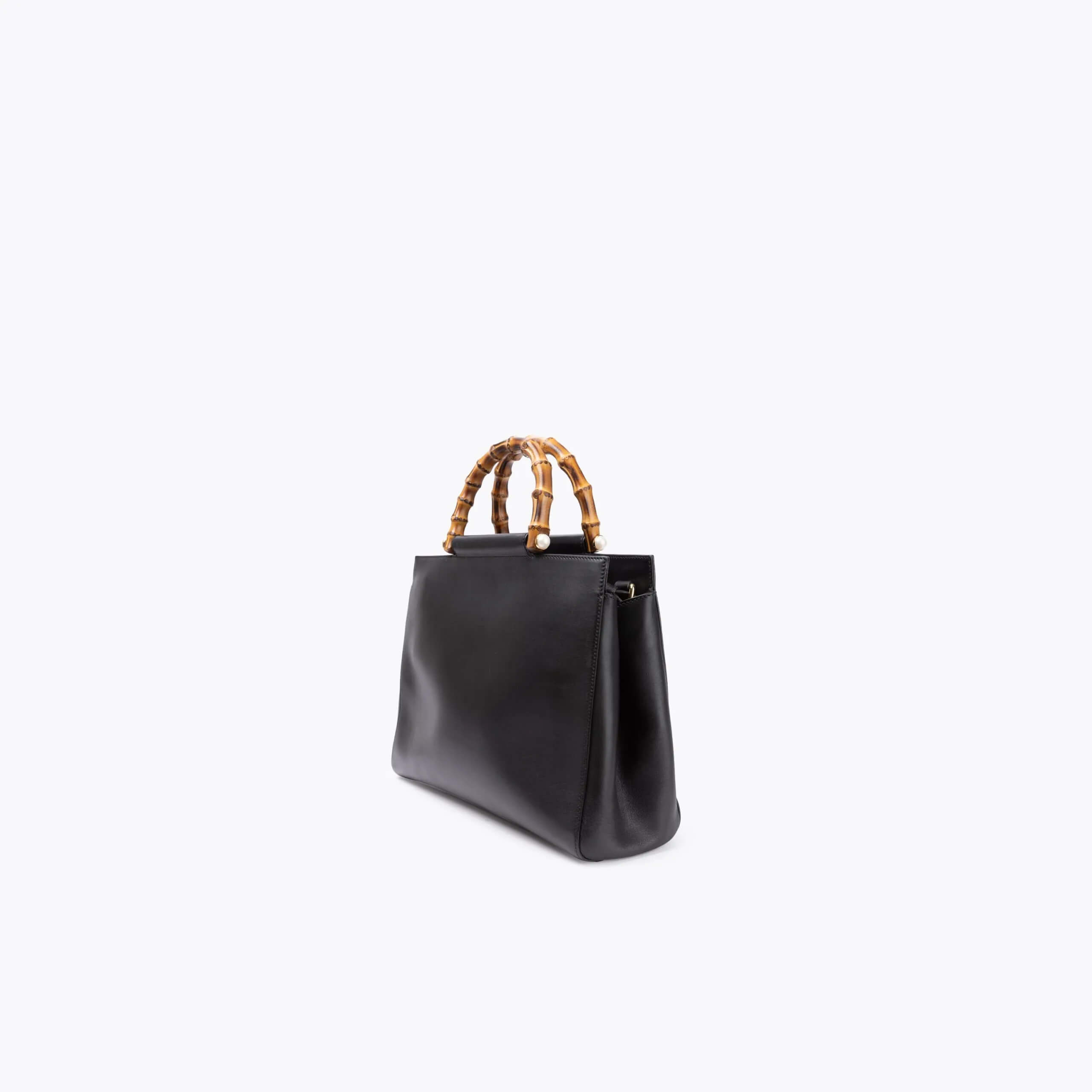 Gucci Black Smooth Leather Mini Nymphaea Bamboo Top Handle Bag at 1stDibs Gucci Nymphaea Bamboo Bag Introducing a duo of new bags linked by a house icon. The bag features a looping bamboo handle with pearl details at the end, an optional red and navy blue nylon web stripe shoulder strap, and gold hardware. Skip to main content accessibility at farfetch. These new bags are from the brand's resort 2017 collection. Free shipping & complimentary gift.. Gucci Nymphaea Bamboo Bag.