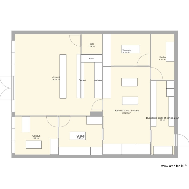 Clinique Vétérinaire Plan dessiné par jpremy Plan Cabinet Veterinaire Comment aménager un cabinet ou une clinique vétérinaire ? Learn how to create a functional, hygienic and attractive veterinary clinic that complies with local regulations and meets your business needs. Selon votre projet, les contraintes d’aménagement seront variables. Identifying the optimal location of surgery or dental suites and efficiency in. Image et choix des teintes. Conception de plans pour constructions. Plan Cabinet Veterinaire.