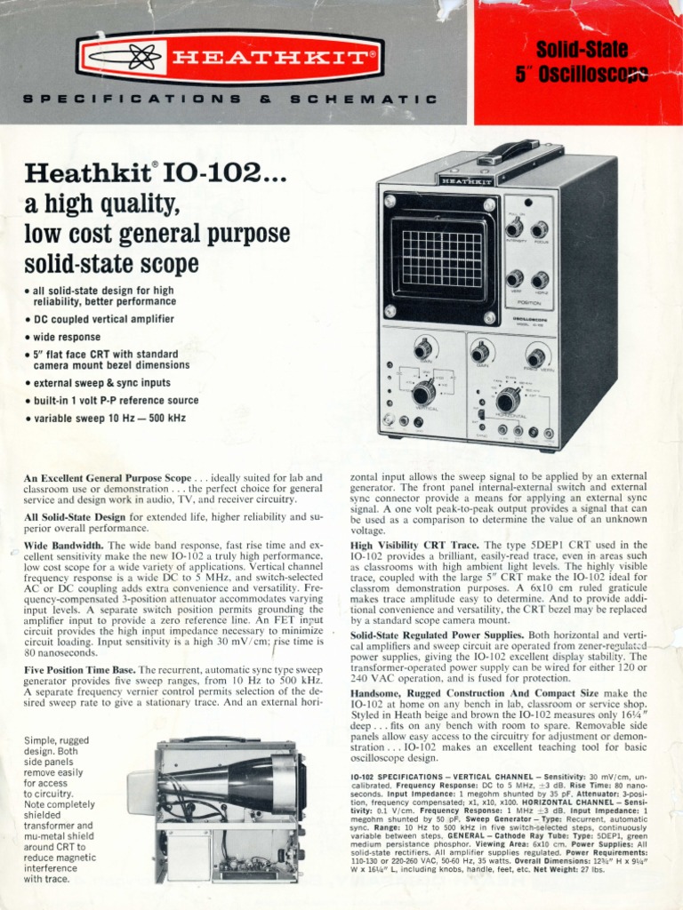 Heathkit Oscilloscope 10-102 Find top brands, exclusive offers, and unbeatable. I replaced the electrolytic capacitors and some transistors that were very temperature. You may download up to 10 different files in a 15. heathkit io 102 manual. Find top brands, exclusive offers, and unbeatable. Click a row in the table below to download the file. 702 rows 701 files available.