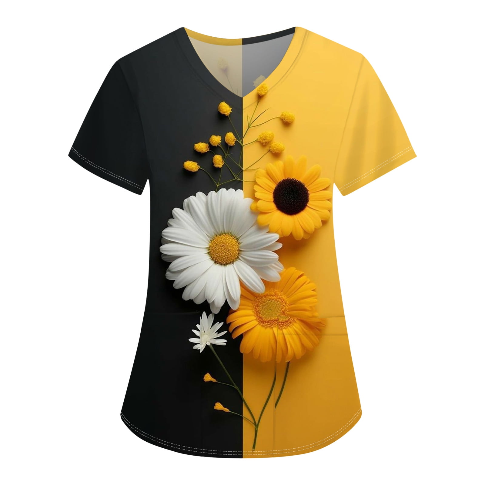 YDKZYMD Plus Size Women Scrub Set Sunflower Plus Size Nurse Uniform