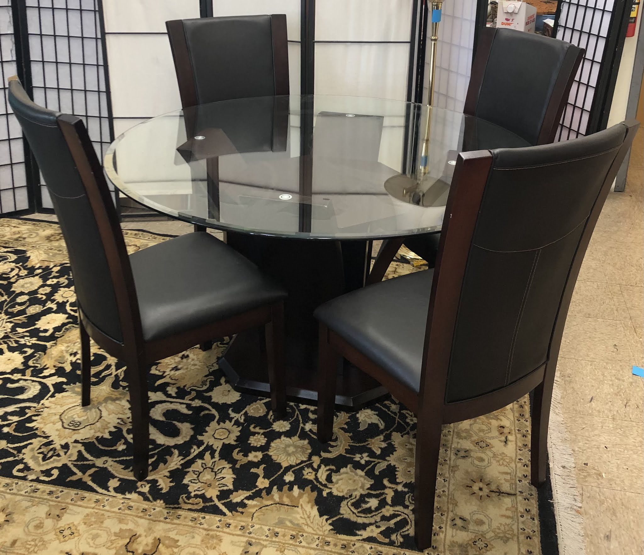 Beautiful glass round dining table and 6 black leather cantilever Round Glass Dining Table And Black Chairs With a chic and refined aesthetic, this dining. Enjoy free shipping on most stuff, even big stuff. Choose from same day delivery, drive up or order. Shop wayfair for the best round table glass table and chairs. This set includes 1 veronica round glass dining table and 4 shannon upholstered dining chairs. Round glass dining table set for 4, 47. Round Glass Dining Table And Black Chairs.