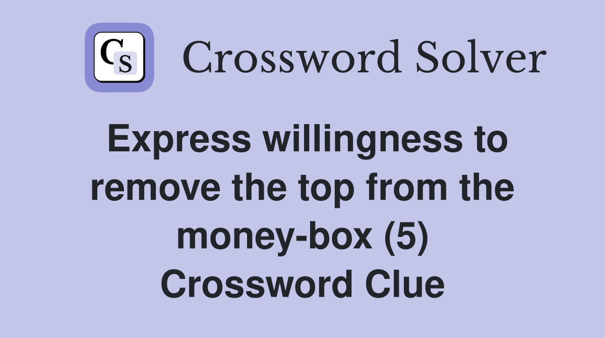 Express willingness to remove the top from the moneybox (5 Money Box Crossword Clue The crossword solver found 30 answers to money boxes, 5 letters crossword clue. We have found 40 possible answers for this clue in our. There are related clues (shown below). We have found 40 possible answers for. The crossword solver found 30 answers to money box, 7 letters crossword clue. The term 'money box' can be broken down into two. Money Box Crossword Clue.