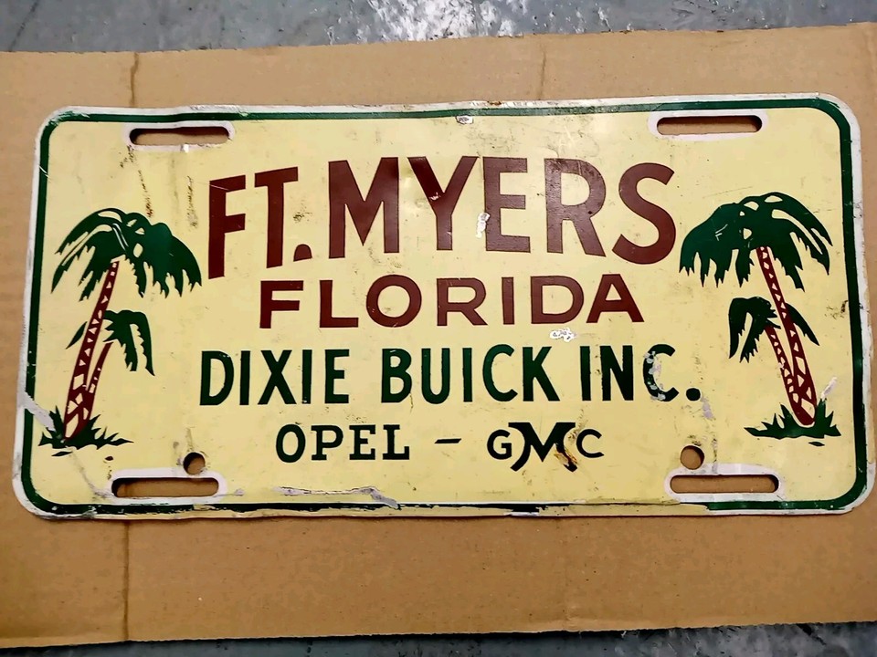 Vintage Ft. Myers Florida Licence Plate Decal Dixie Buick Inc. Opel