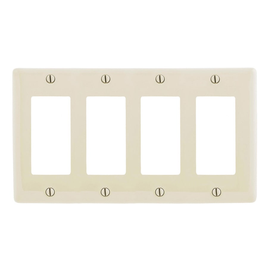 Hubbell 4Gang Light Almond Quad Decorator Midsize Wall Plate in the