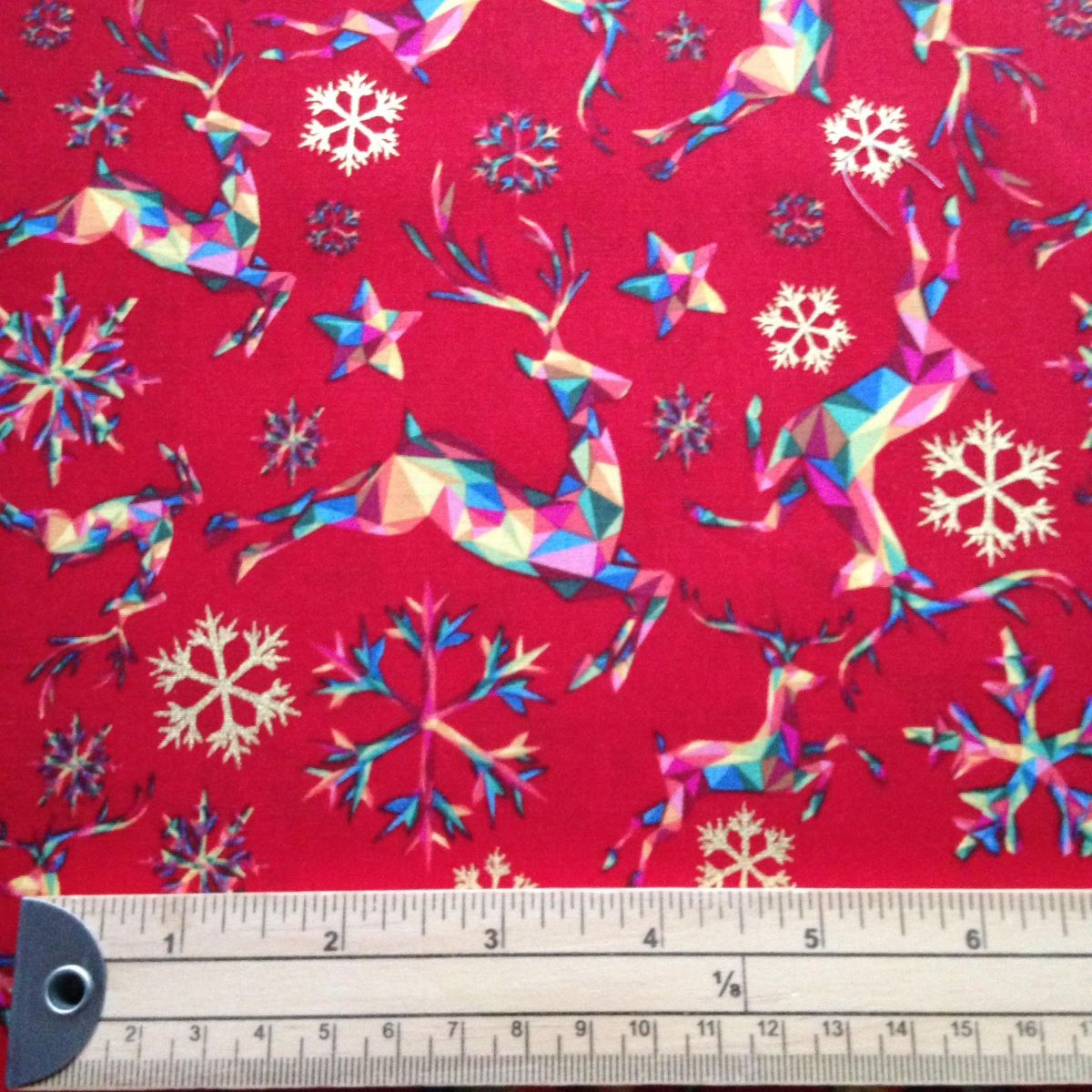 Rainbow Metallic Reindeer Red Fabric Favourites