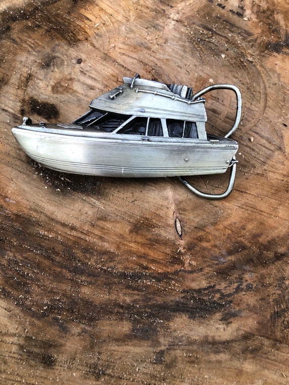 1979 Bergamot Brass Works USA Belt Buckle Boat Gem
