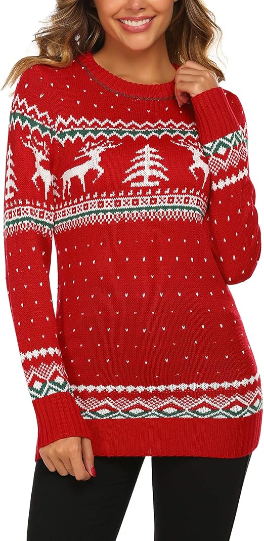 UNibelle Women's Ugly Christmas Sweater Christmas Tree Reindeer Pullover Jumper,S