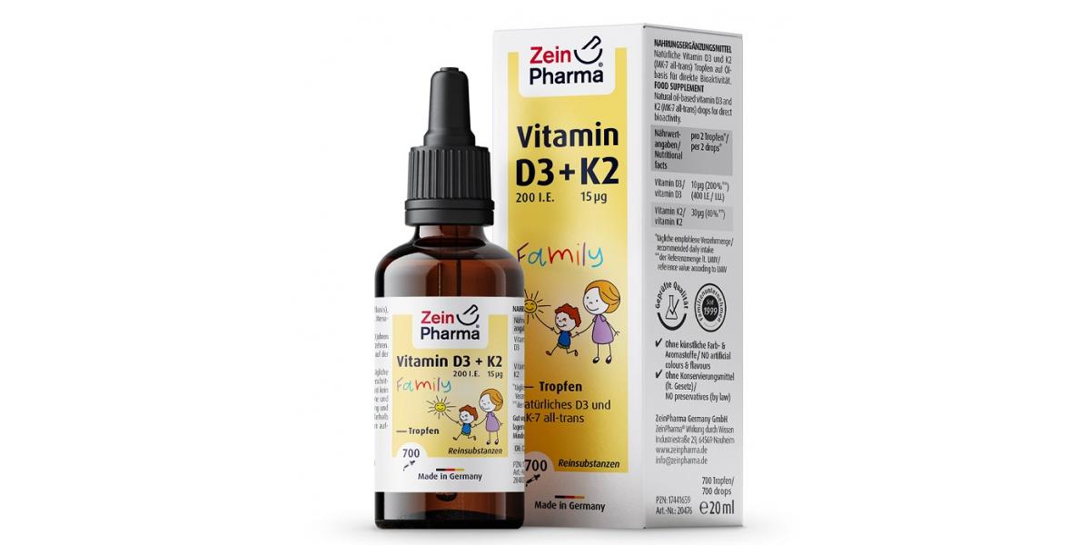 Zein Pharma Vitamin D3 + K2 Family Drops 20 ml. Powerbody.eu