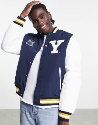 Pull & Bear Yale Varsity Jacket In Navy ModeSens
