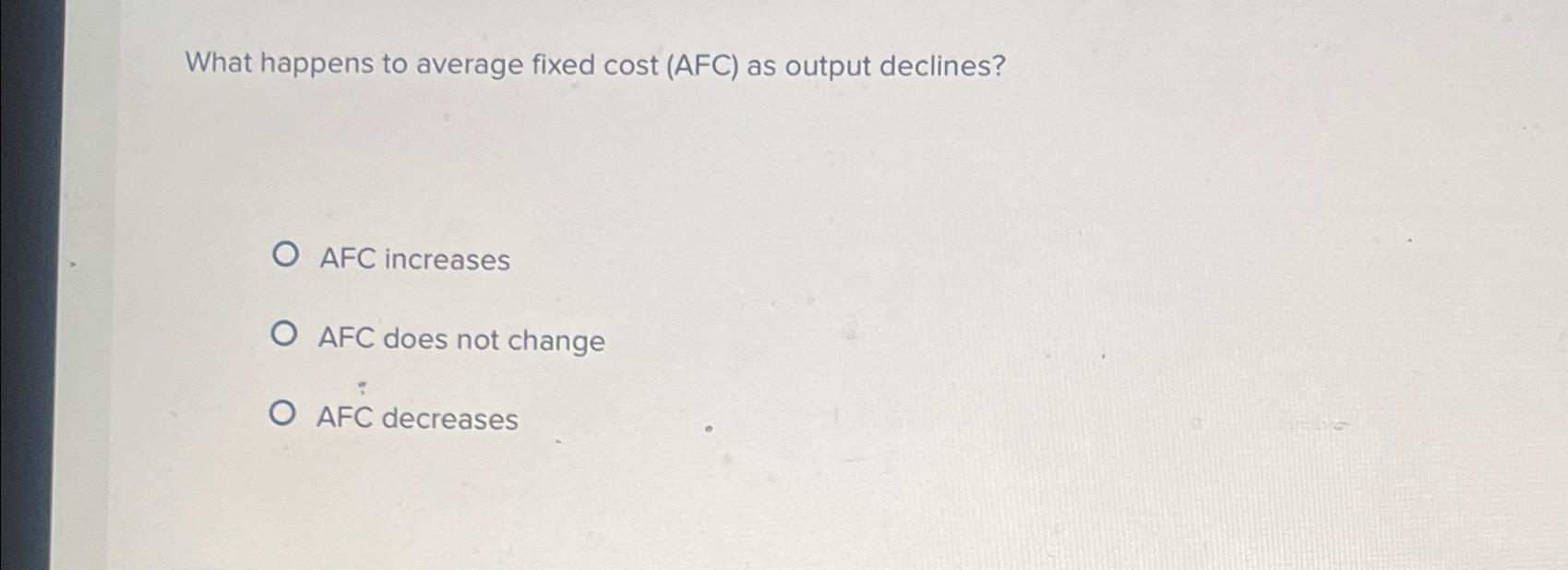 Solved What happens to average fixed cost (AFC) as output